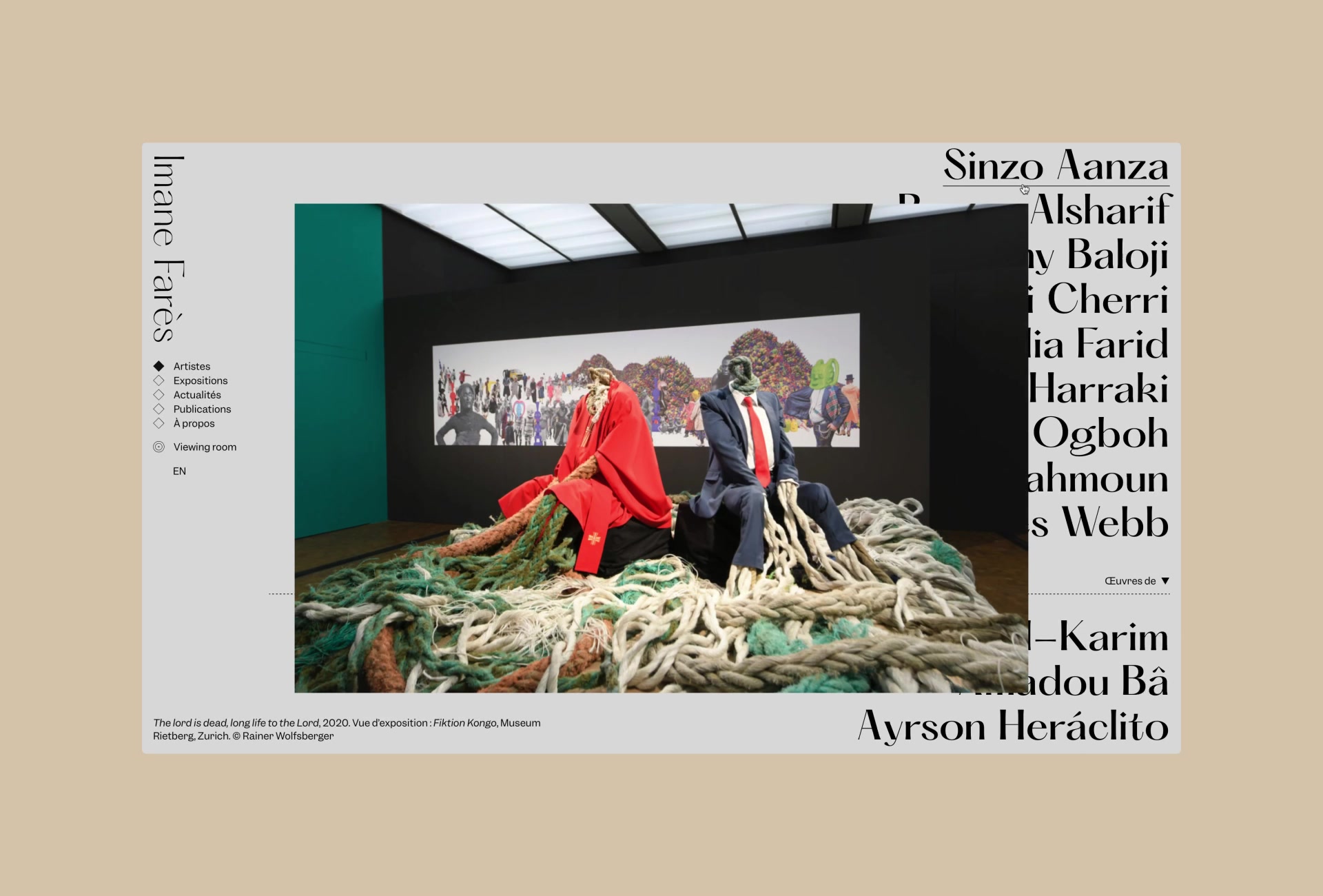 Imane Farès fonde en 2010 la galerie éponyme à Paris, avec pour ambition de valoriser les pratiques d’artistes contemporains du continent africain et des mondes arabes.